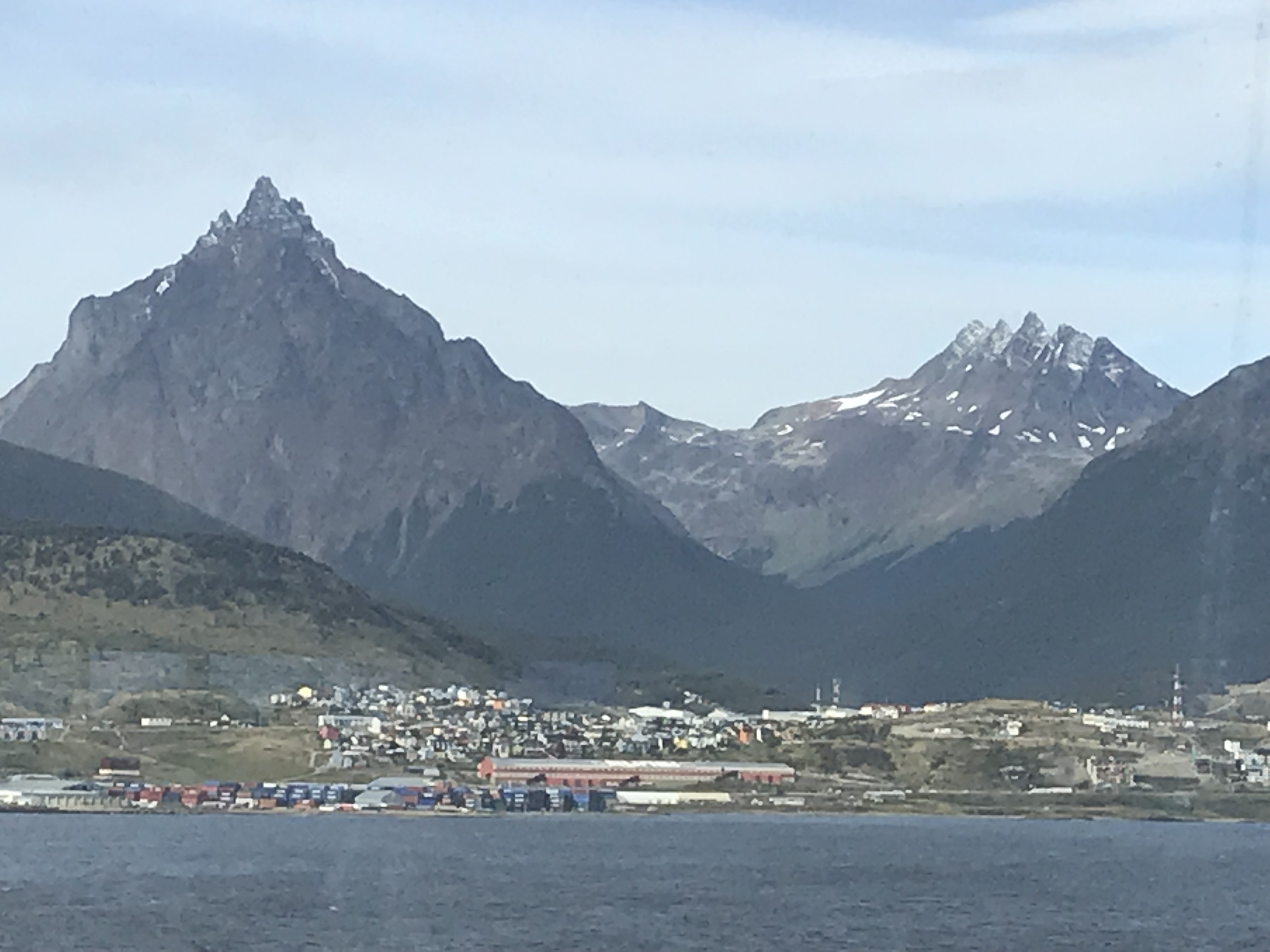 Punta Arenas, Chile, the largest port on the Straits of Magellan. Sunrise brought the peaks and glaciers into